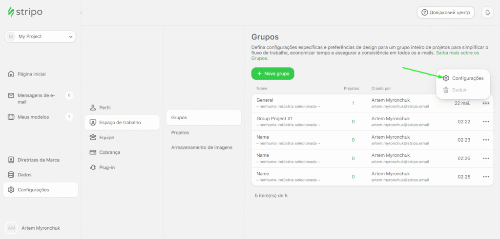 3. Escolha o projeto desejado e abra as “Configurações”.